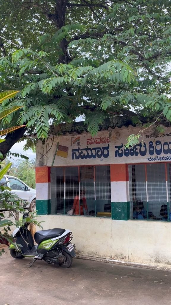 The tiny Bommenahalli Village Lower Primary School is located on land given by a private party for educational use by the Panchayat.